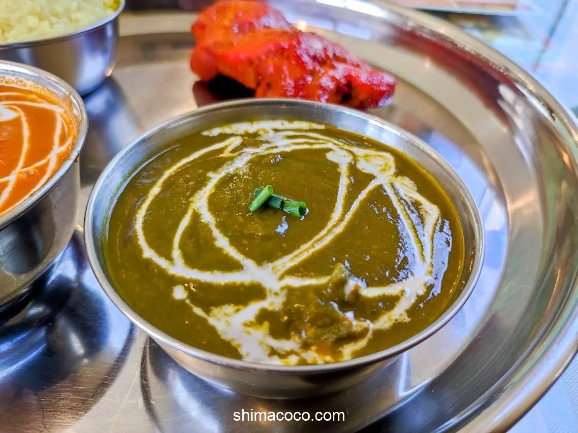 サグチキンカレーは鮮やかな緑色がとっても美しい。
