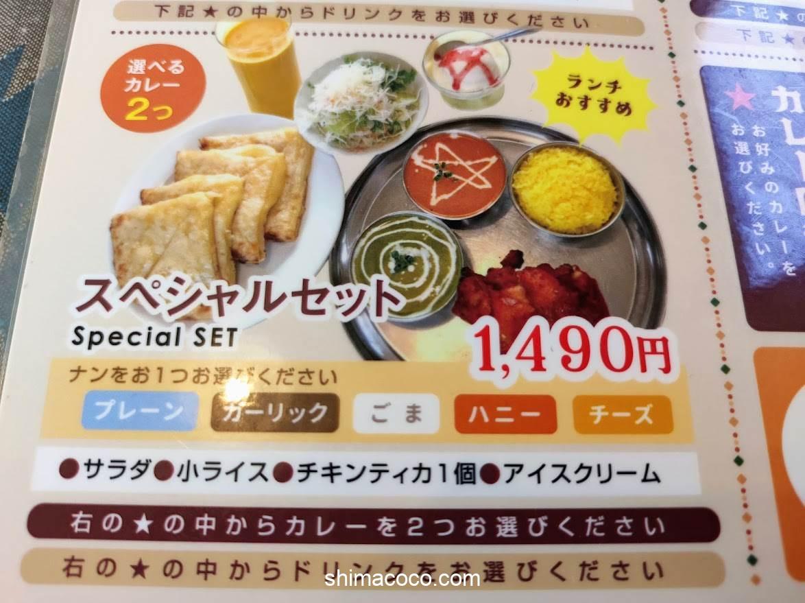 チーズナンが食べたい人はスペシャルセットがお得です。