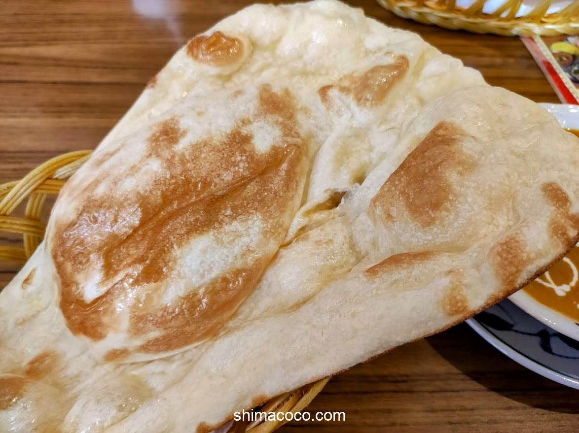 カレーと一緒に焼き立てアツアツの特大サイズのナンが運ばれてきます。