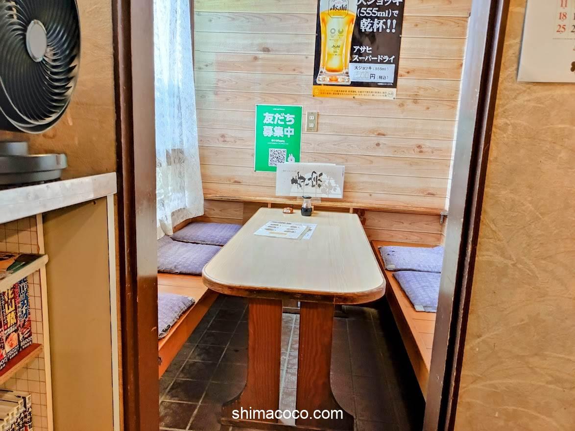 個室タイプのテーブル席があります(イスはベンチ仕様)。
