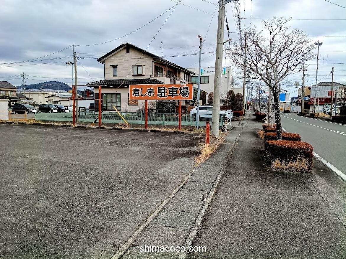 寿し宗(すしそう)の駐車場は、お店の前に数台停められるスペースがあり、それとは別に東側にとても広い駐車場があります。