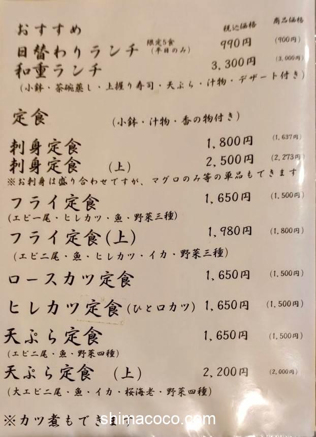 季節料理 和重(わじゅう)のランチメニューをご紹介します。