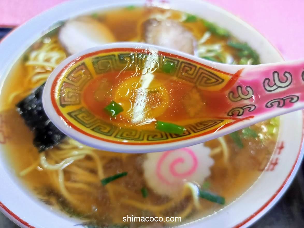 スープはあっさりサッパリした優しい口当たりで飲みやすい。
