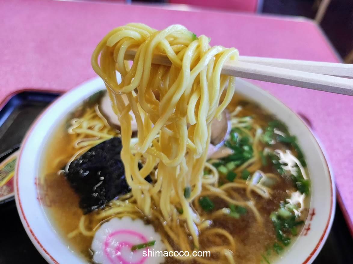 麺はちょっと硬めでゴワッとした食感の「中細麺」です。