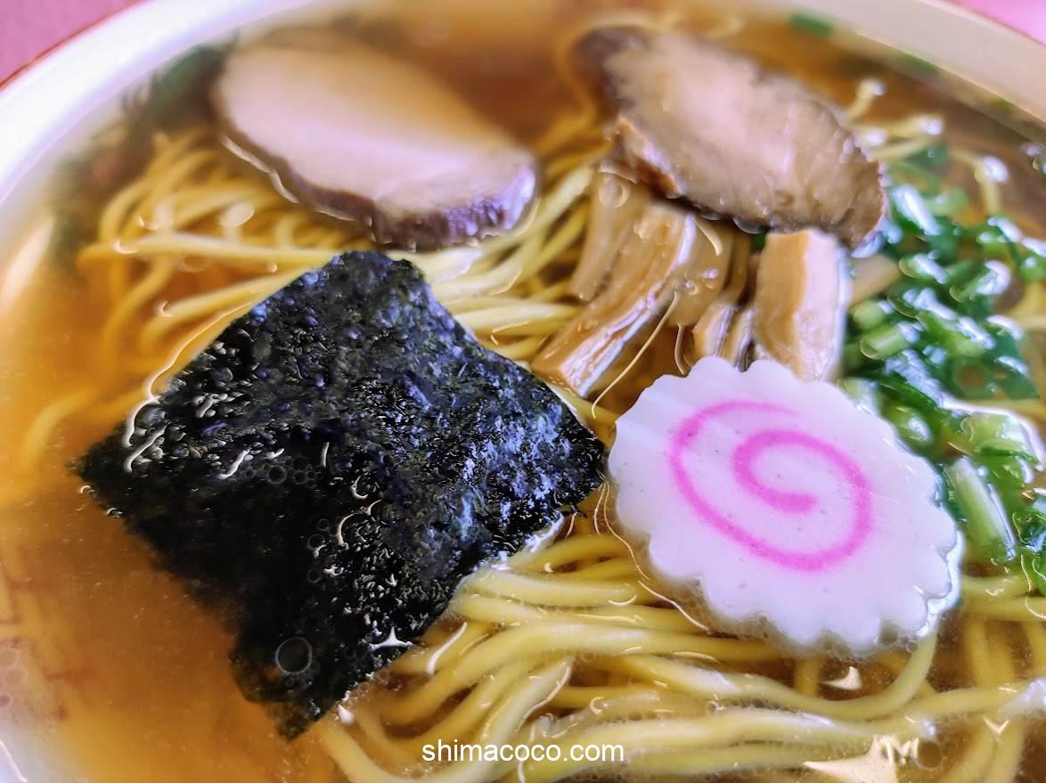 トッピングは「チャーシュー・メンマ・ナルト・海苔・ネギ」がのっています。