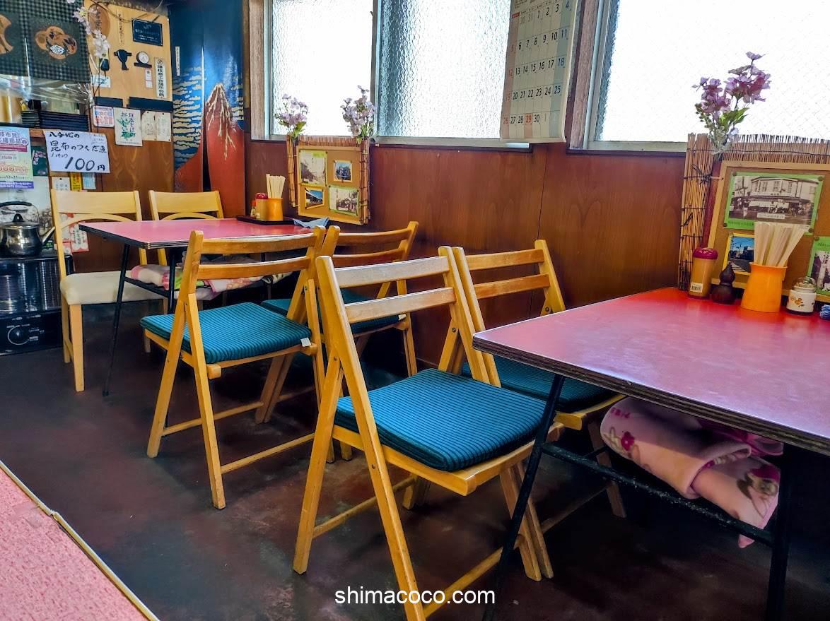 店内は3列のテーブル席が配置されています。